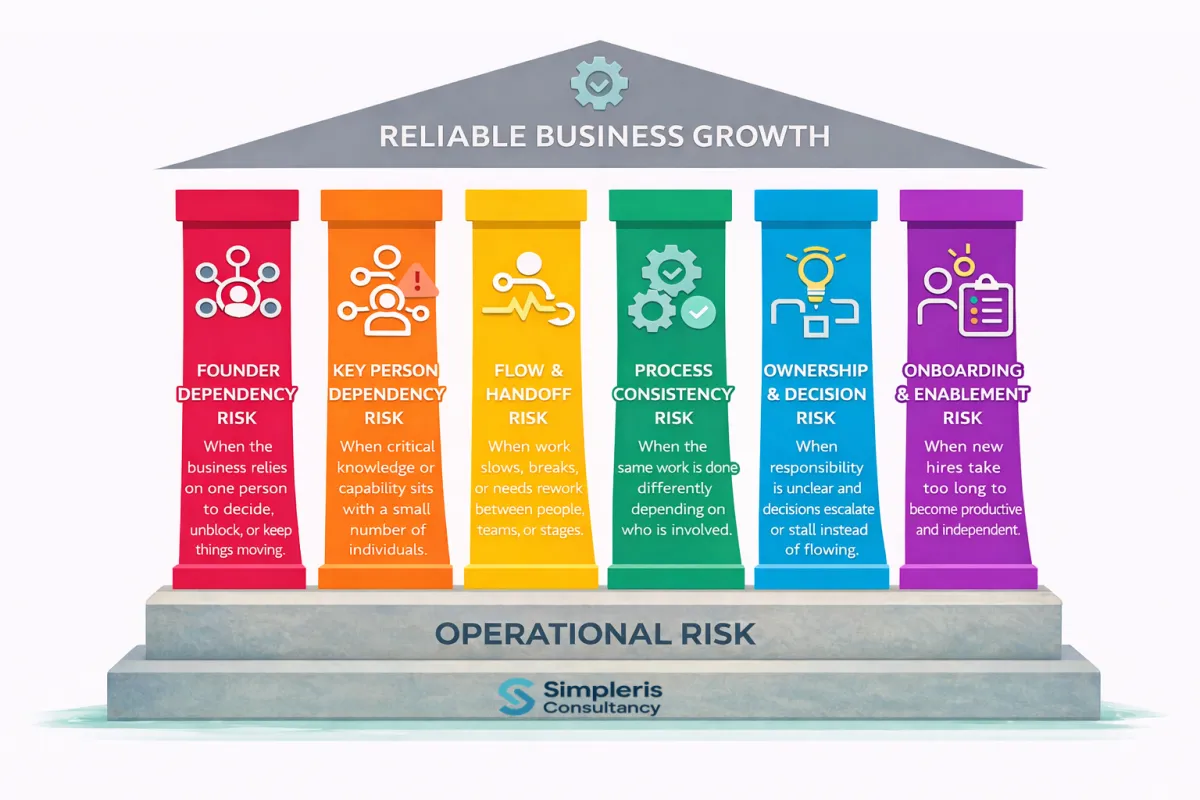 Operational risk in a small business is the risk created when the business cannot run reliably without specific people.